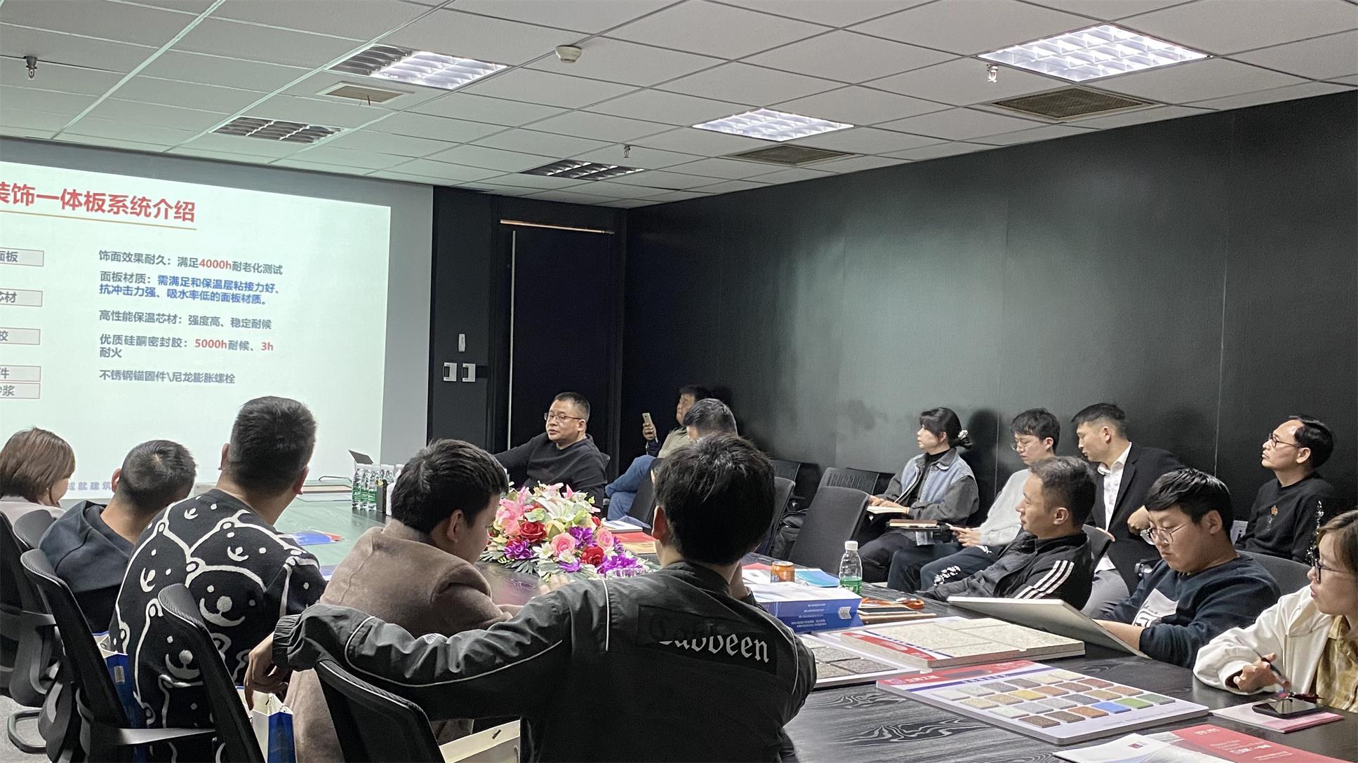 安建達(dá)黃總和與會專家及設(shè)計(jì)師共同探討和交流《外墻節(jié)能裝飾一體板系統(tǒng)的行業(yè)情況及技術(shù)分享》。