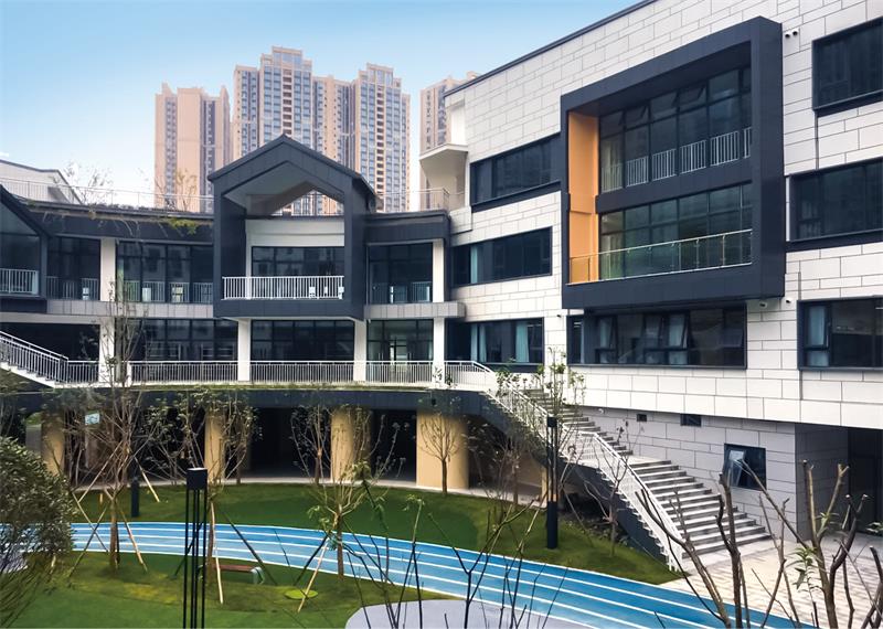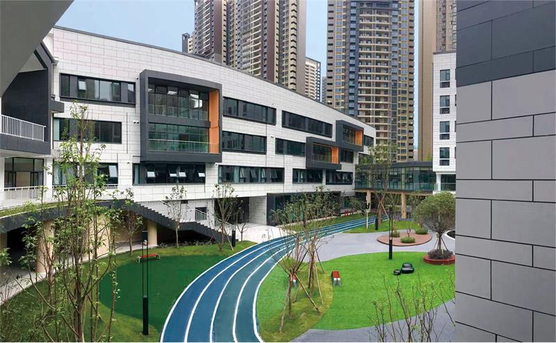 項目位于成都市龍泉驛區(qū),為上市企業(yè)天立教育集團(tuán)旗下在成都龍泉建立的高端私立校區(qū)。我司承建了該項目的外墻保溫復(fù)合一體板、外墻鋁單板幕墻,工程外立面規(guī)模約 17000m ,采用仿石飾面效果保溫裝飾一體板系統(tǒng)。 在 2021 年該項目被成都市教育系統(tǒng)評為”最美校區(qū)“、“成都市教育示范校區(qū)”。